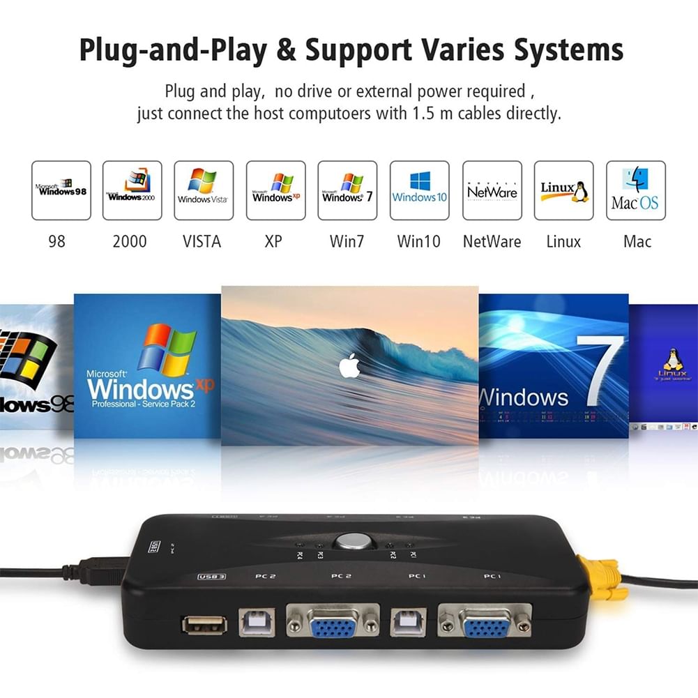 Be the first to review “4 In 1 Out USB 2.0 VGA KVM Switch Switcher Manually for Keyboard Mouse Monitor Adapter black”