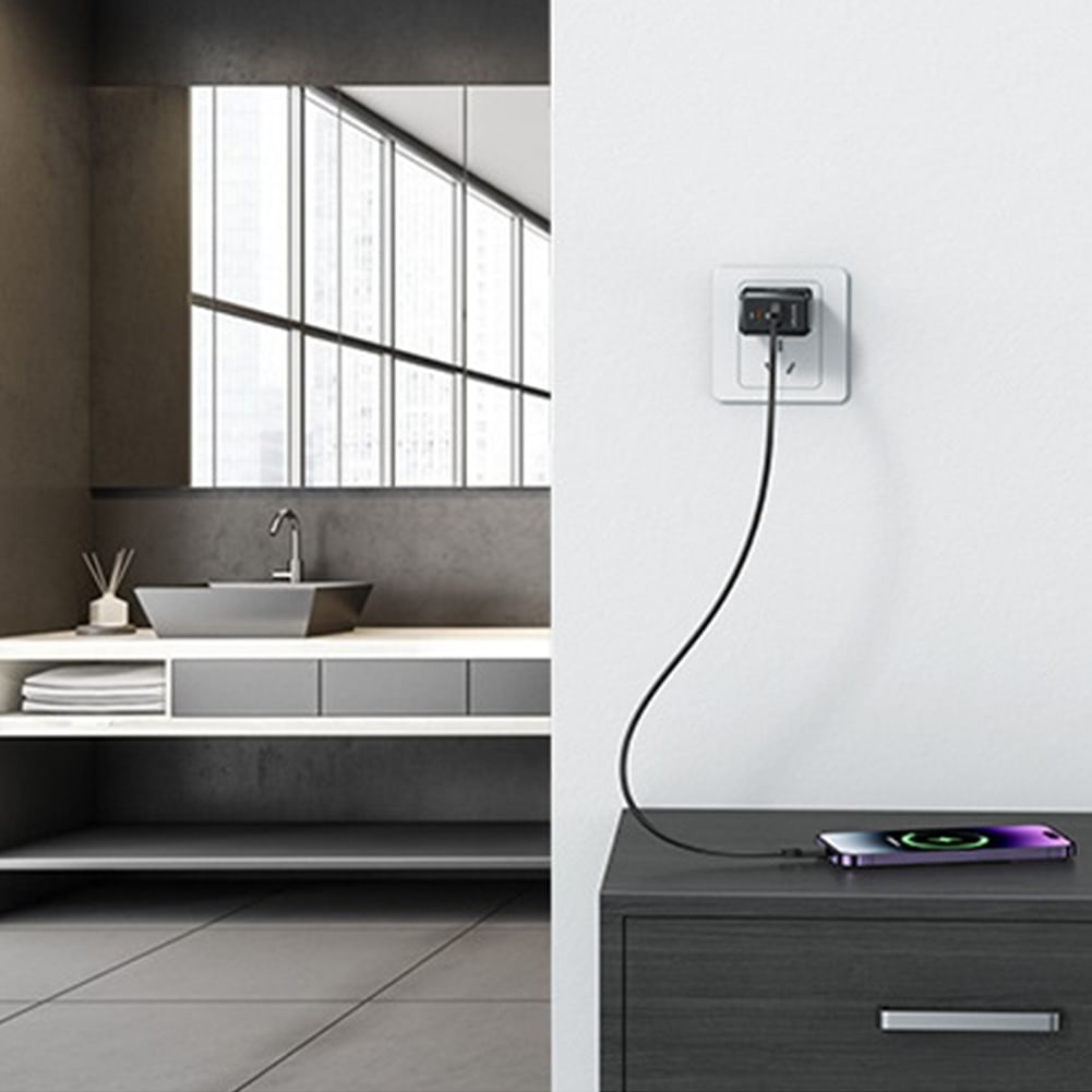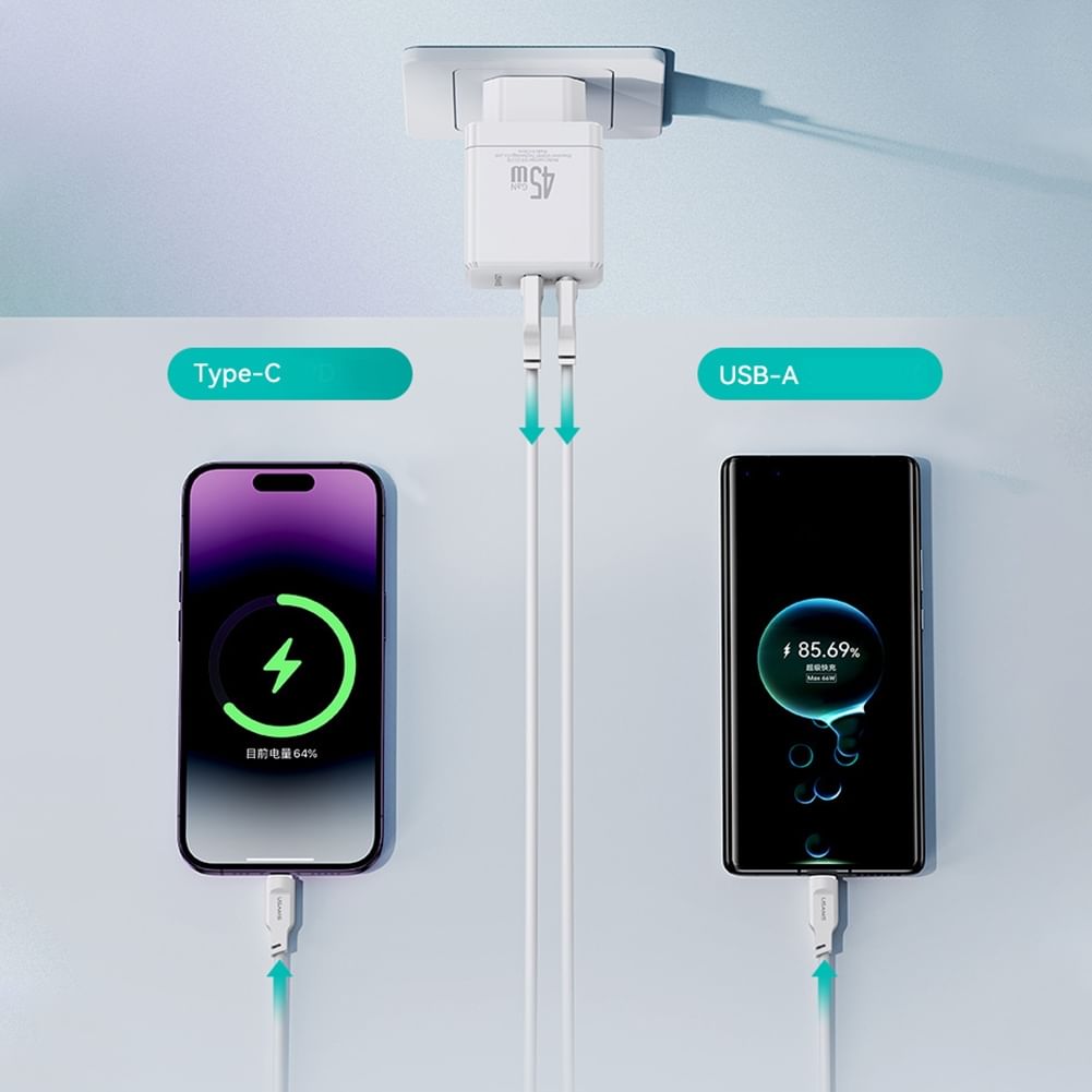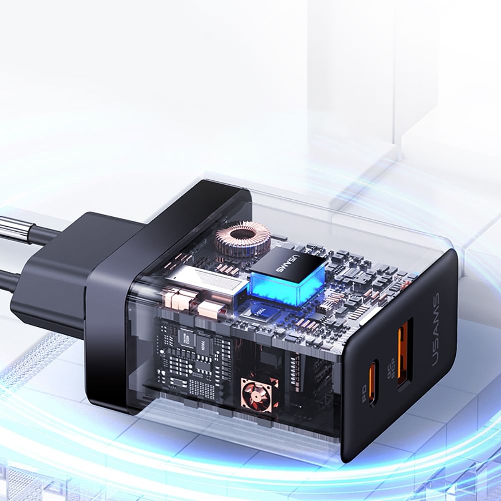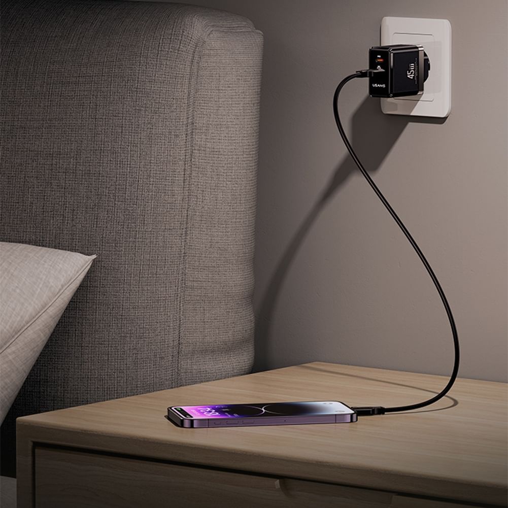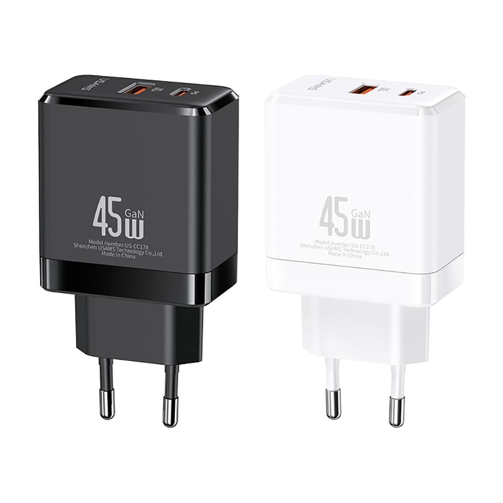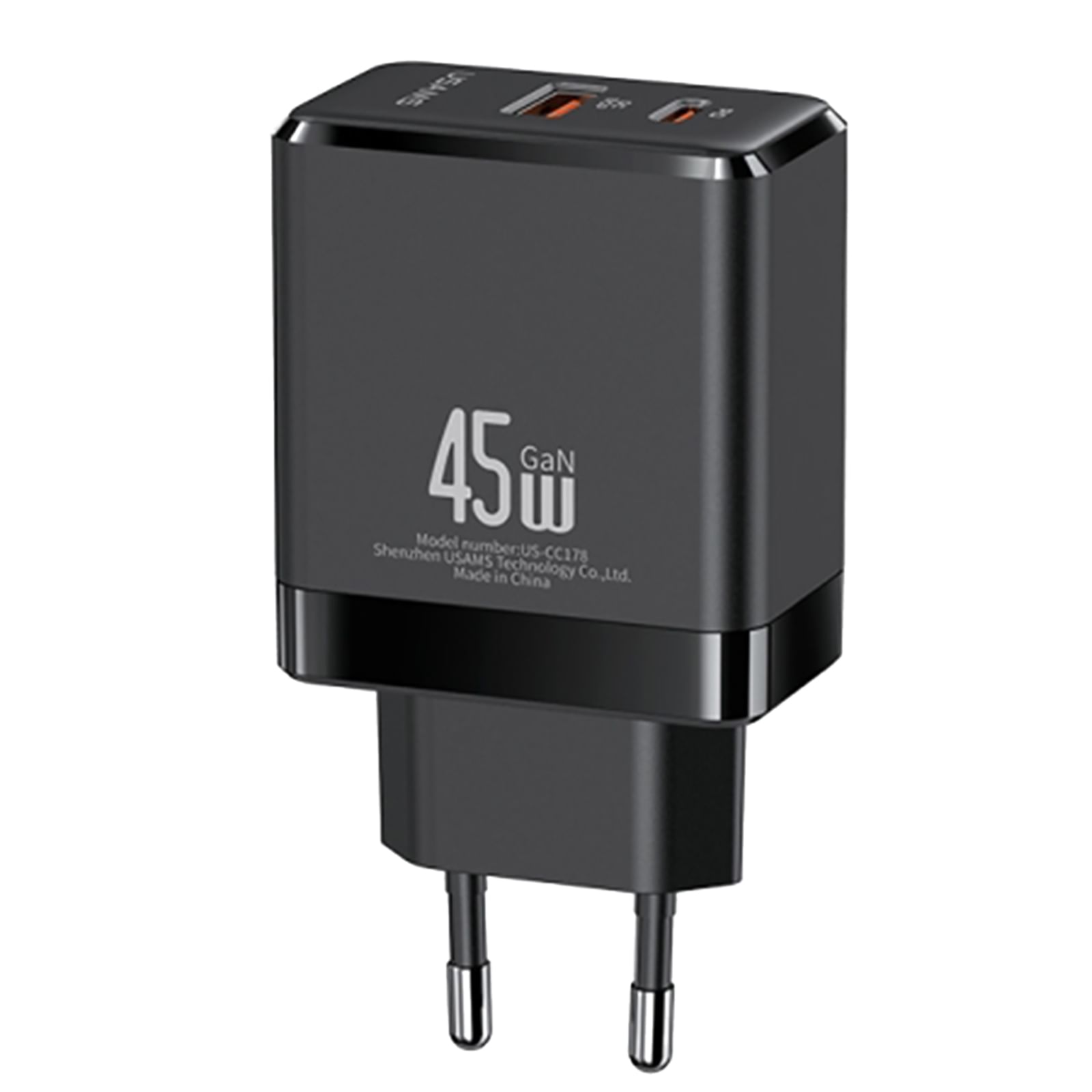 T58 Charging Adapter 45W 2 Ports Charging Station USB-C USB-A Ports Fast Charger Station Quick Charging Black EU Plug
